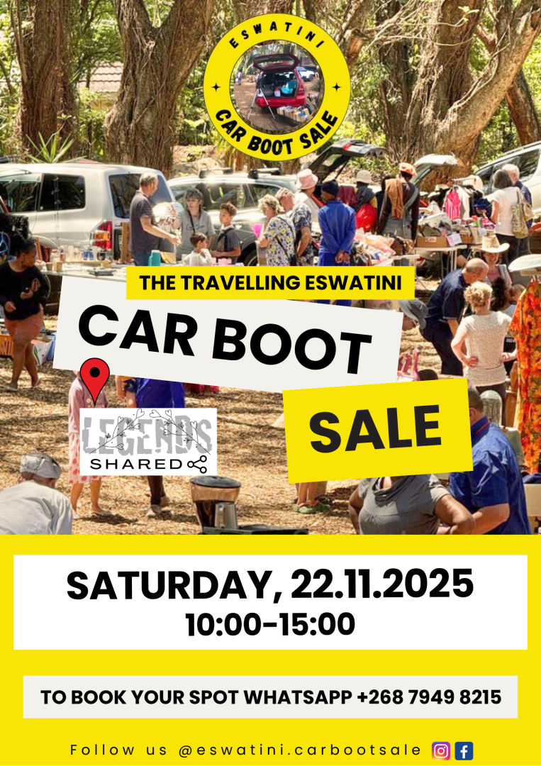 The ESWATINI CAR BOOT SALE is moving on. Our last station for this year will be at Legends SHARED under the trees.