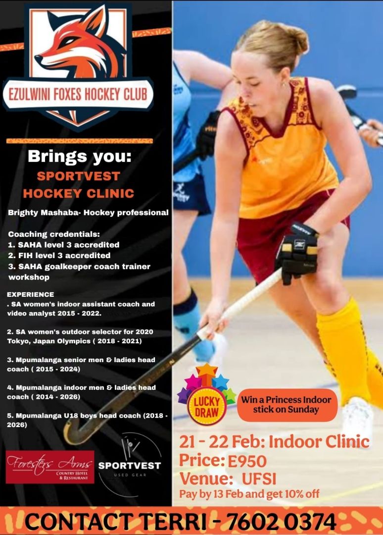 We are so excited to bring the 1st Indoor Hockey Clinic to eSwatini, with a top-level indoor hockey coach to share his expertise with us. The Clinic will be held at UFSI on the 21 & 22 February,