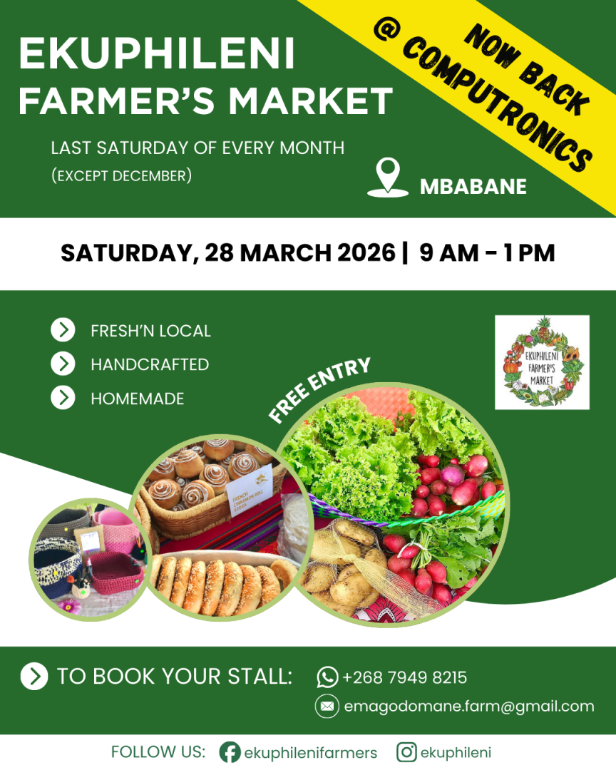 Join us at the EKUPHILENI FARMER‘S MARKET at COMPUTRONICS, Mbabane