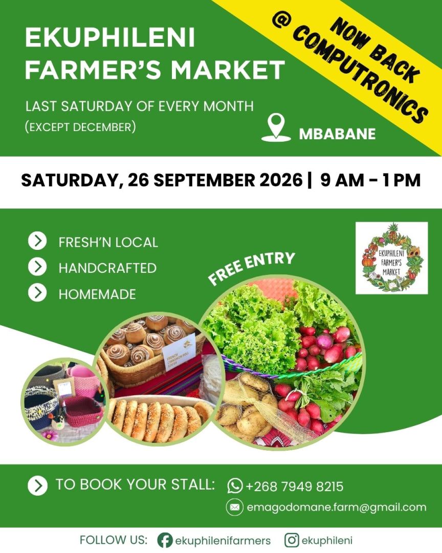 Join us at the EKUPHILENI FARMER‘S MARKET at COMPUTRONICS, Mbabane