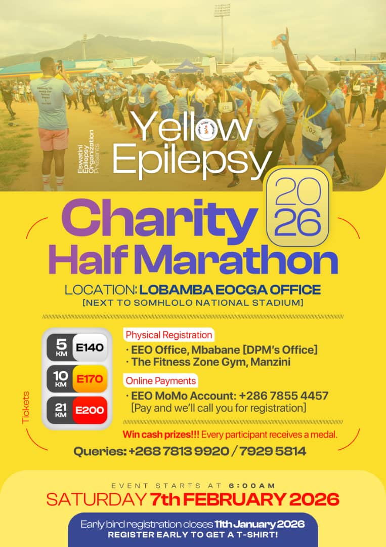 The Yellow Epilepsy Charity Half-marathon is an initiative by the Eswatini Epilepsy Organization that has seen the implementation of 9 editions. The Yellow Epilepsy Charity Half-marathon 2026 is the 10th edition in the series.